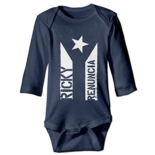 Q98BABY Infant Baby Boys Girls Long Sleeve Romper Bodysuit Ricky Renuncia Print Jumpsuit Navy