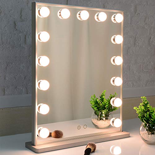 • ★Vanity Mirror with Lights:with 15pcs dimmable Led bulbs,2pcs extra replacement led bulbs,with nature and bright lighting,adjustable white daylight or warm yellow light