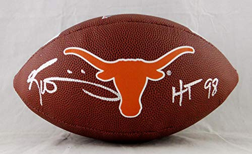 This is a Hand Autograph of Ricky Williams of the University of Texas Longhorns on a Signature Series Logo Football and inscribed with HT 98. This item has a James Spence Witness Authentication, which comes with a JSA numbered sticker and a matching Certificate of Authenticity. You can view this item on the SpenceLOA website. It was signed either at a public autograph appearance or a private signing. This is a stock photo of the item. Although you may not receive this exact item, the item you receive is virtually identical and brand new in great shape.
