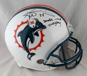 This is a Hand Autograph of Ricky Williams of the Miami Dolphins on a Riddell Football ProLine Full Size Helmet and inscribed with Smoke Weed Everyday. This item has