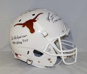 This is a Hand Autographed Helmet of Ricky Williams of The University of Texas Longhorns. Inscribed with 1998 Heisman 2x All-American 1998 College P.O.Y. 2X Doak Walker 2X Jim