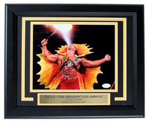 Offered is a Ricky “The Dragon” Steamboat Signed/Autographed 8×10 Photo Framed. The outer frame size is 13 inches x 17 inches. This photo is authenticated by JSA and contains