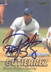 Ricky Gutierrez autographed Baseball Card (Houston Astros, SC) 1997 Fleer #345. Item comes fully certified with a tamper-evident, serialized hologram and certificate of authenticity. If a product is unsigned