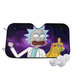 HAOHAODE Thanos Infinity Gauntlet Rick Morty Cartoon Car Windshield Sun Shades Blocks UV Rays Sun Foldable Visor, Universal Car Sunshades Shield Cover Protector with 4 Suction Cups 28×50 Inch