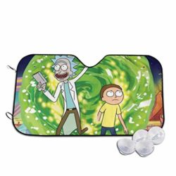 HAOHAODE Anime Rick Morty Car Windshield Sun Shades Blocks UV Rays Sun Foldable Visor, Universal Car Sunshades Shield Cover Protector with 4 Suction Cups 28×50 Inch