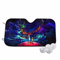 HAOHAODE Starry Sky Rick Morty Car Windshield Sun Shades Blocks UV Rays Sun Foldable Visor, Universal Car Sunshades Shield Cover Protector with 4 Suction Cups 28×50 Inch