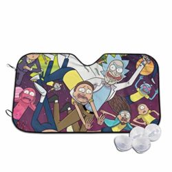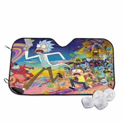 HAOHAODE Anime Theme Rick Morty Car Windshield Sun Shades Blocks UV Rays Sun Foldable Visor, Universal Car Sunshades Shield Cover Protector with 4 Suction Cups 28×50 Inch