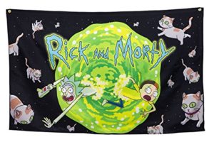 Authentic Rick and Morty wall banner. Banner features 2 aluminum grommets for easy hanging. 100% Polyester. 30in. x 50in. Product Features Officially Licensed Rick and Morty Wall Banner 100%