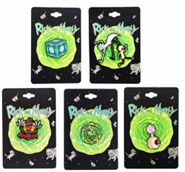 Wear your love of Rick and Morty with these stylish enamel pins! This fun bundle includes five (5) pins: Mr. Meeseeks, Scary Terry, Portal, Plumbus, and a pin featuring