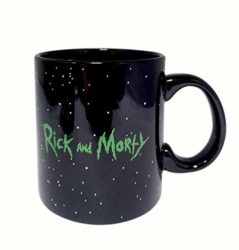 Start your morning off right with this heat changing Rick and Morty ceramic coffee mug. Surprise! When you add hot liquid to this mug Schrodinger’s cats begin to appear!