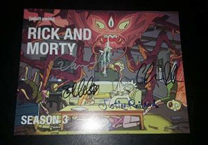 Justin Roiland, Dan Harmon, and Tom Kenny personally hand signed this 8.5×11 inch photograph with a sharpie pen. You get the exact item pictured in the listing, this is