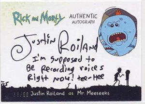 Justin Roiland and Dan Harmon personally hand signed this with sharpie pen at New York Comic Con. This item also comes with a picture from when the item was