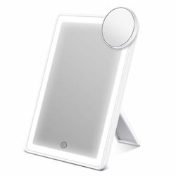 DIMMABLE LED LIGHT MAKEUP MIRROR This adjustable LED vanity mirror is able to change the brightness by sensor touch switch to suit for daytime, dark night, home and offices.