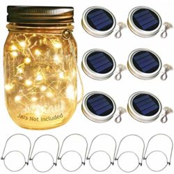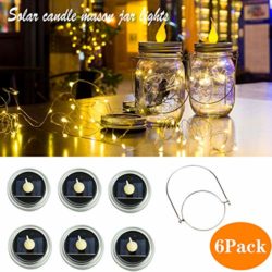 Size:6 Pack-30 LEDs Lights&Hangers(No Jars )Solar Mason Jar Lid Lights, 6 Pack 30 Led String Fairy Star Firefly Jar Lids Lights, Jars Not Included, Best for Mason Jar Decor,