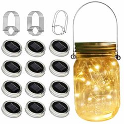 Size:12 Pack-30 LEDs Lights&Hangers(No Jars )Solar Mason Jar Lid Lights, 12 Pack 30 Led String Fairy Star Firefly Jar Lids Lights, Jars Not Included, Best for Mason Jar Decor,