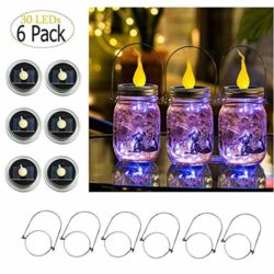 Size:6 Pack-30 LEDs Lights&Hangers(No Jars )Solar Mason Jar Lid Lights, 6 Pack 30 Led String Fairy Star Firefly Jar Lids Lights, Jars Not Included, Best for Mason Jar Decor,
