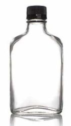 200 ml (6.6 oz) Glass Hip Flask with Curved Back. Convenient size. Easily carried in a pocket. “200 ml” is imprinted in the glass. Glass will not affect taste