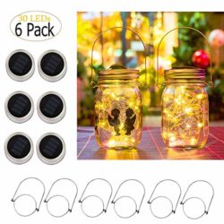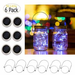 Size:6 Pack-30 LEDs Lights&Hangers(No Jars )Solar Mason Jar Lid Lights, 6 Pack 30 Led String Fairy Star Firefly Jar Lids Lights, Jars Not Included, Best for Mason Jar Decor,