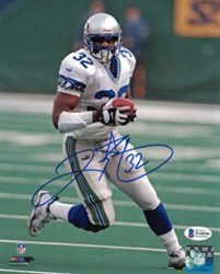 This is an officially licensed 8×10 photo that was personally autographed by Ricky Watters. This photo includes a certificate of authenticity from Beckett Authentication Services (BAS) and Denver Autographs.