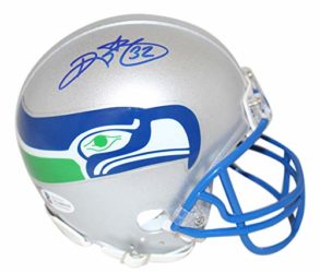 This is a Seattle Seahawks mini helmet that was personally autographed by Ricky Watters. This helmet includes a certificate of authenticity from Beckett Authentication Services (BAS) and Denver Autographs.