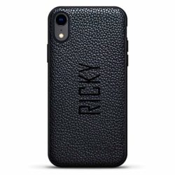 NAME: RICKY, MODERN FONT STYLE | Luxendary Leather Series Slim Edition Case w/ Genuine Leather Back & 3D Printed Design for iPhone XR (6. 1″) in Pitch Black Product
