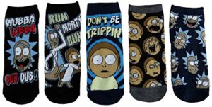 Rick and Morty Mens Ankle-No Show Socks 5 Pair Pack Product Features Officially licensed by Adult Swim Rick and Morty Mens Ankle-No Show Socks 5 Pair Pack Material: 70%