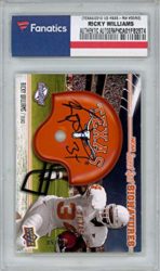 This highly collectible trading card has been personally hand-signed by Ricky Williams. The card is then encapsulated in a tamper proof acrylic case. Autograph has been authenticated by Upper