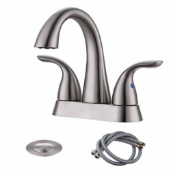 SPECIFICATIONS -Faucet Body Material : Lead-free Brass (less than 0.25% lead content) -Drain Material : Stainless Steel and Plastics(PP) -Valve Type:Ceramic Disc Cartridge -Number of Handles:TWO -Connections:3/8″ Compression Female