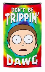 Authentic Rick and Morty wall banner. Banner features 2 aluminum grommets for easy hanging. 100% Polyester. 30in. x 50in. Product Features TIME FOR AN ADVENTURE: It is time to