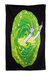 Officially Licensed Rick and Morty Wall Banner Product Features Show Peace Among Worlds With This Rick And Morty Wall Banner 100% Woven Polyester, High Resolution Printed Design Aluminum Grommets