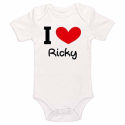 Kinacle I Love Ricky Personalized Baby Bodysuit (3-6 Months, White)